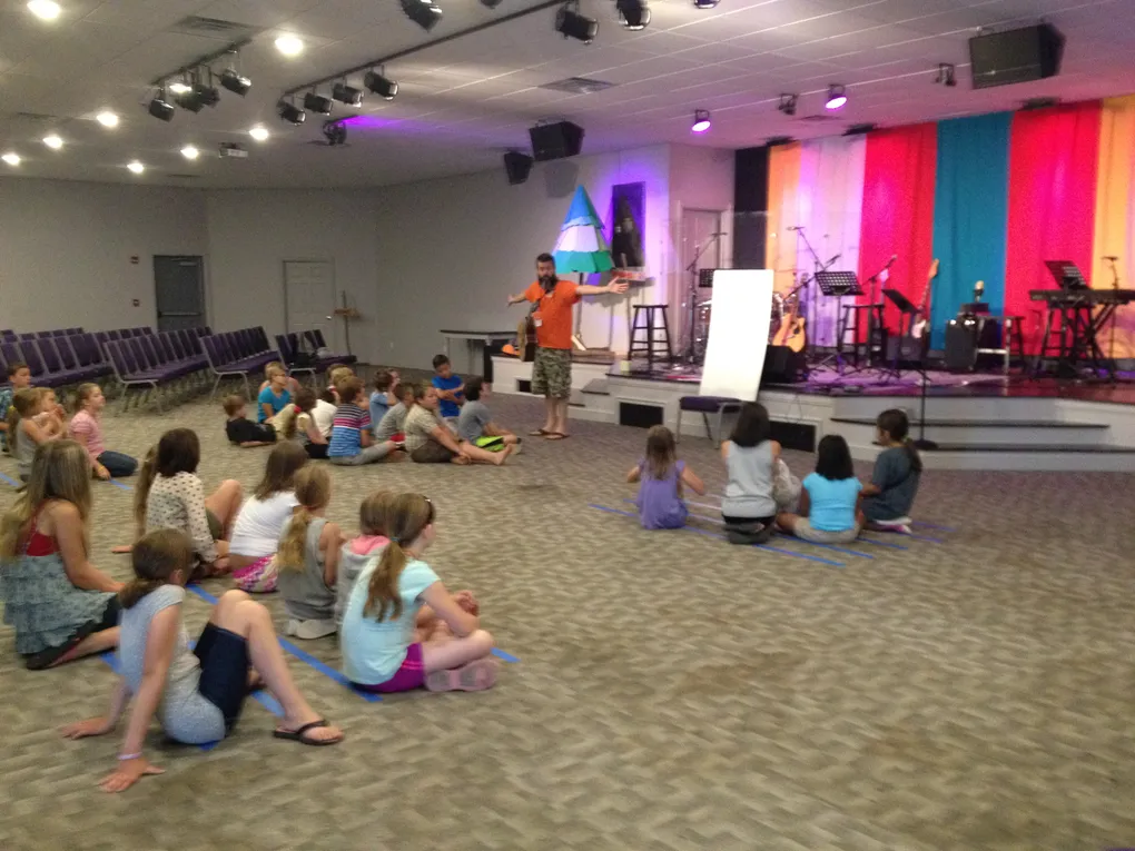 After lunch, we took the kids to fun activities like boating at the lake, swimming at the pool, and a campfire at a farm. Then, we came back to the church for band practice. We divided the kids into bands and let them experience what it is like to play their instrument while listening to other instruments. There are a lot of skills gained from learning to play with others. One of the most important skills to learn as a worship leader (in my opinion) is how to be a servant more than a show-off. Playing skillfully includes knowing how to follow the leader, how to give space for the other instruments, and how to serve the church with what you are playing.